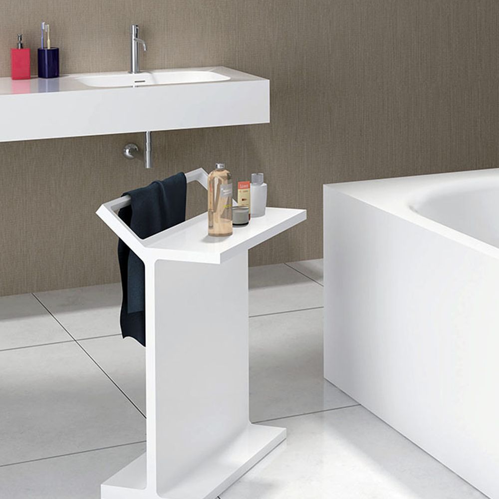 Bernstein floor standing towel rack with shelf in matt white colorThe ultimate bathroom accessory that guarantees ease of use, and style
